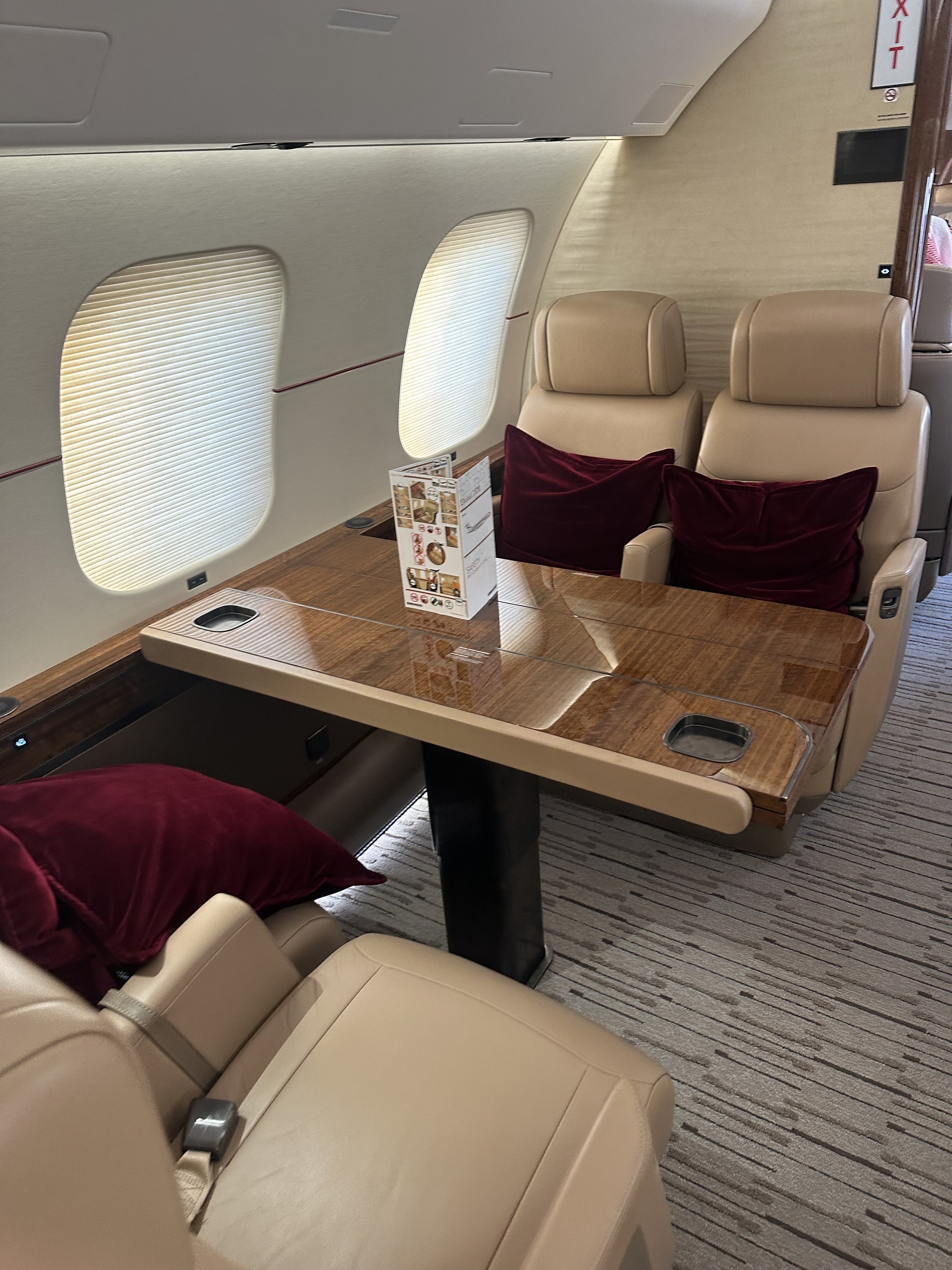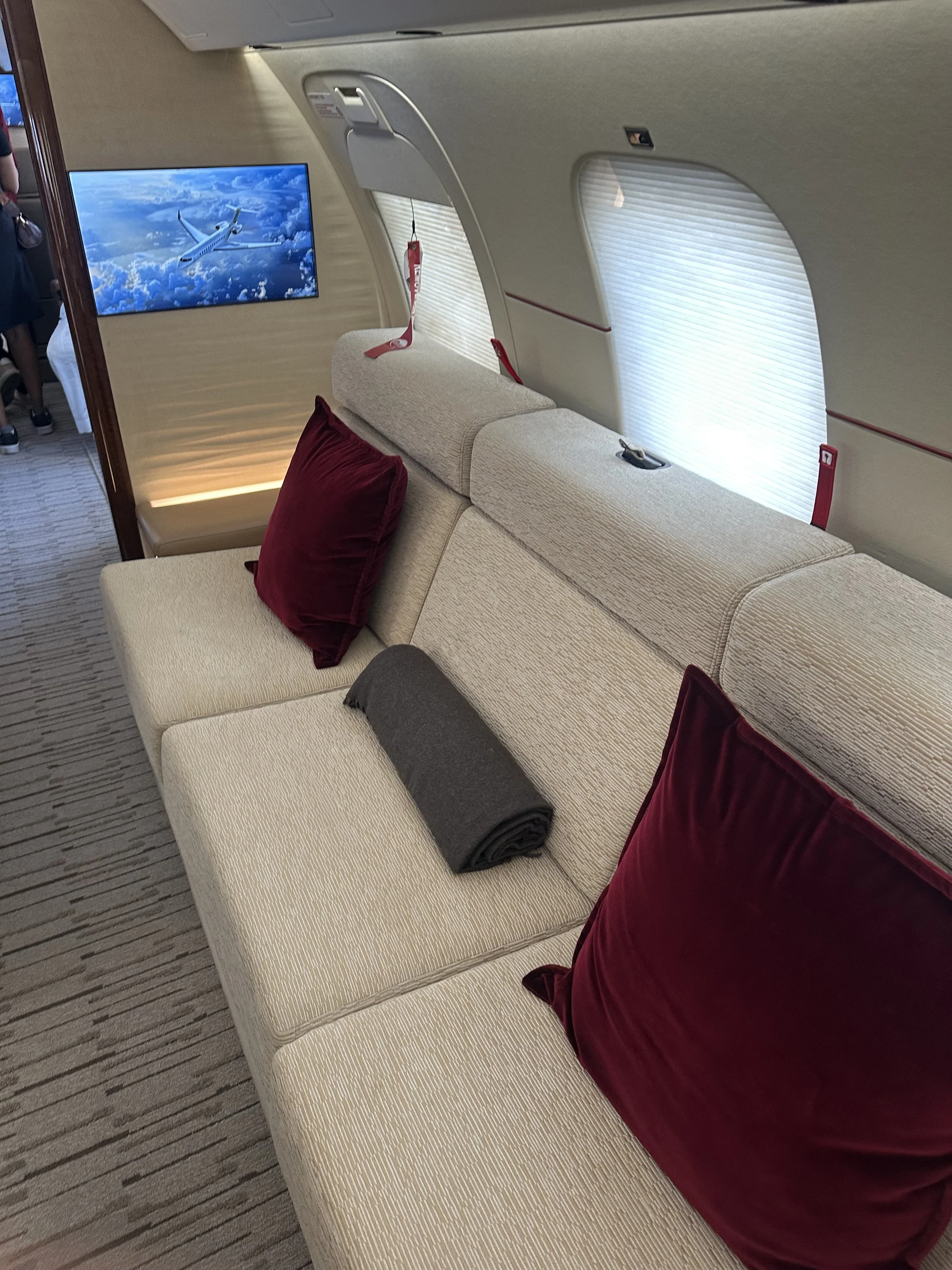 Четыре зоны комфорта: Просторный салон разделен на полноценные зоны для работы, обеда, отдыха и сна. Включает в себя полноценную кухню (Galleys) и отдельную зону для экипажа.
